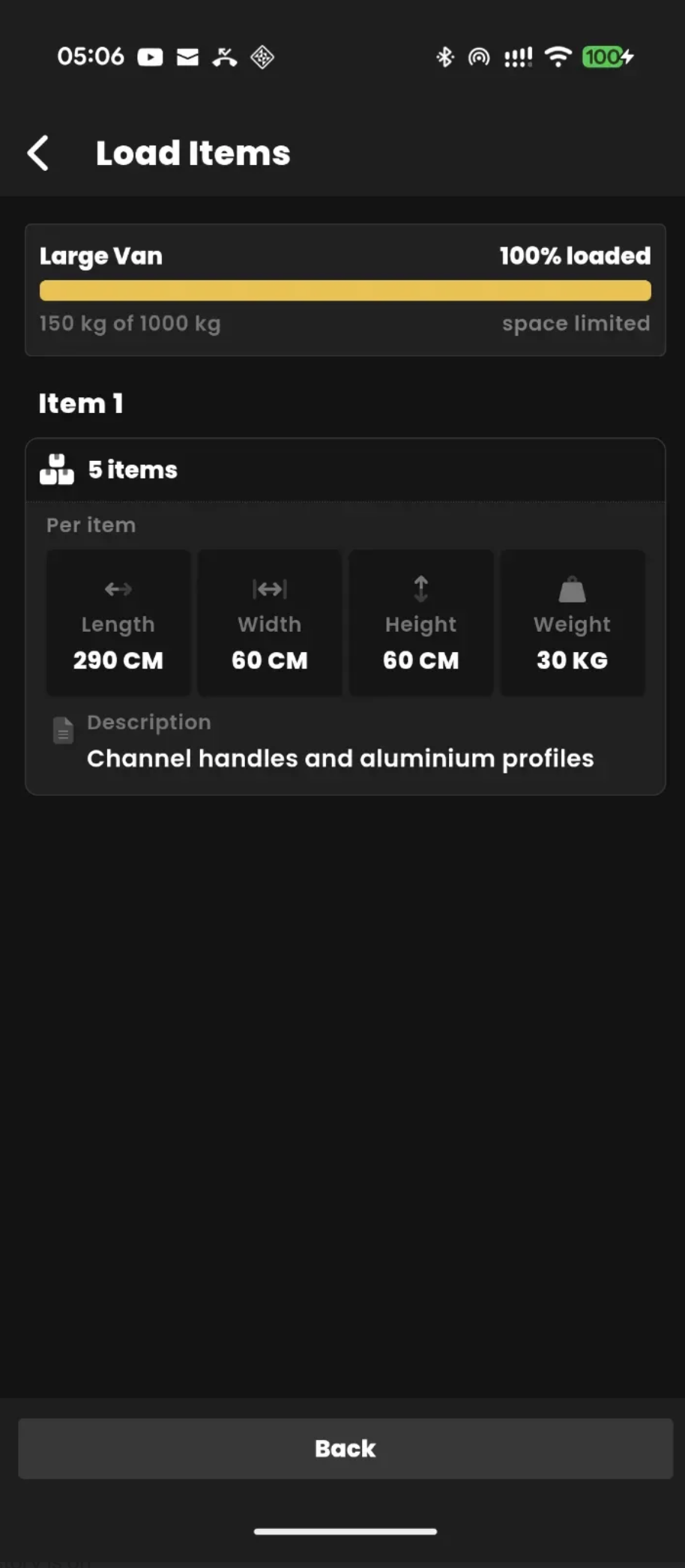 Allocated to a job? You'll now see a rough estimate of how much of your vehicle's capacity the load might use - a quick visual guide to help you prepare.