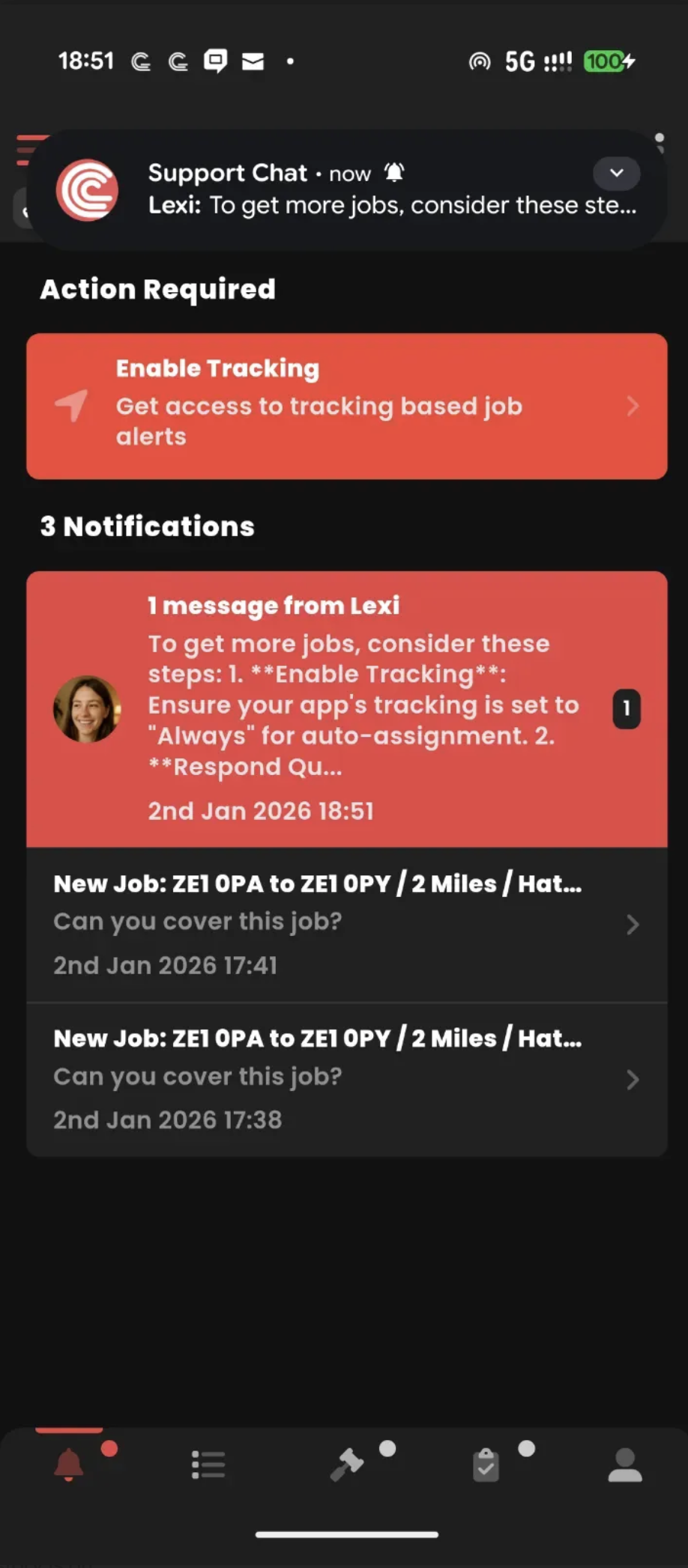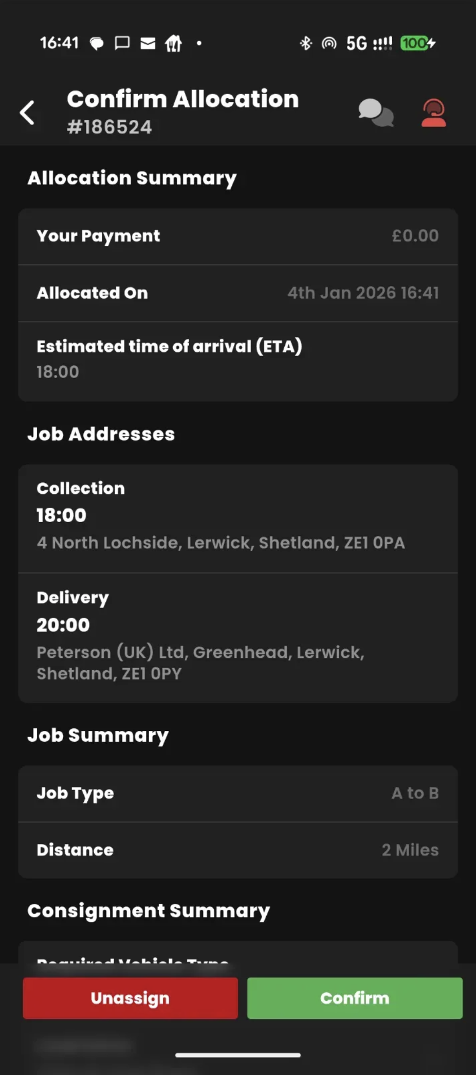 Confirm Allocations - When you're auto-allocated a job, you can now acknowledge it directly in the app with a single tap. No need to send an SMS.